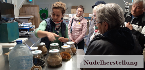 Um ein weiteres Einkommen zu sichern, verwertet die Besitzerin, eine ehemalige Bankerin, den Weizen in ihrer Nudelbackstube: sie produziert dort im Jahr 8 Tonnen Teigwaren. Dafür muss sie einmal in der Woche 12 Stunden lang arbeiten. Die Nudeln verkauft sie direkt auf Märkten und in Kooperation mit anderen Produzenten.