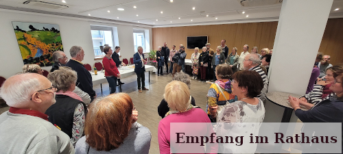 Schließlich geht es zurück nach Châteauroux zum Rathaus, denn um 17:30 Uhr gibt es dort -wie immer bei unseren Besuchen - einen herzlichen Empfang auf Deutsch. Dazu reicht man uns Sekt und leckeres Gebäck. Viele Franzosen aus Châteauroux sind dazu gekommen und es gibt ein freudiges Wiedersehen mit interessanten Gesprächen.